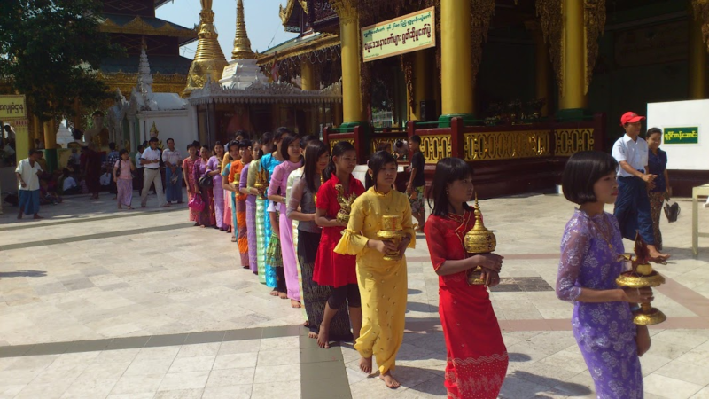 ミャンマーの人は今まではのんびりと静かに暮らしてきました。月の初めには仕事をする日をざっくり決めて、あとは自由。何よりも心の平安を得ることで幸せを感じる生き方です。見知らぬ人と街で会っても目が合うと自然と微笑みあうような余裕があったそうです。