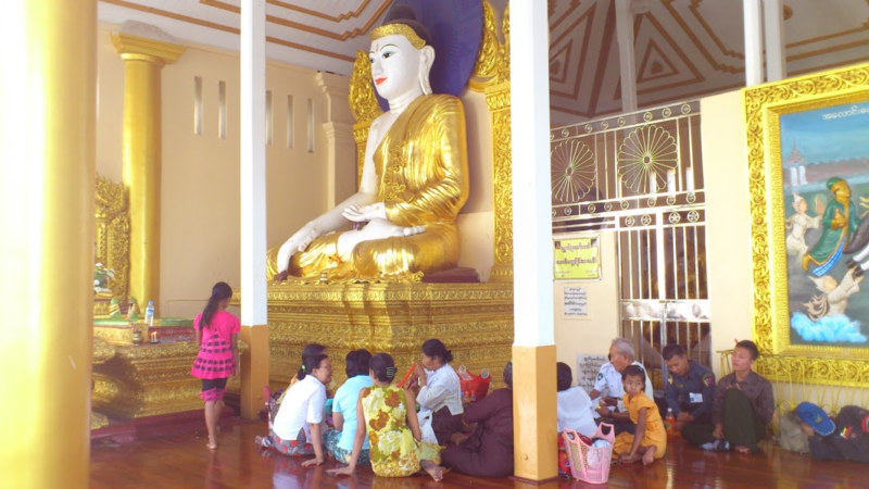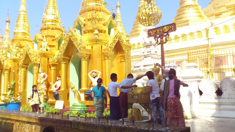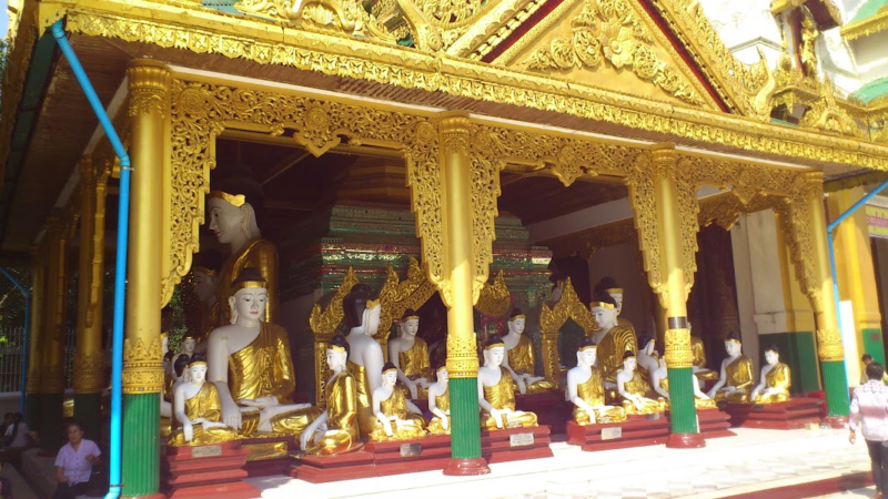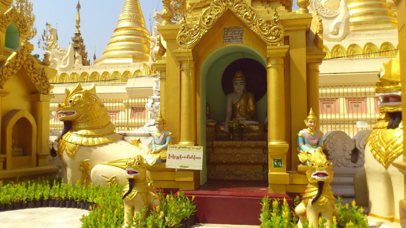 中心の大きな仏塔を取り囲むようにして8箇所に8曜日の祭壇があります。ミャンマーでは生まれた曜日が重要な意味を持っているのですが、この曜日ごとに神様の動物が決められており、それごとに祭壇があるのです。