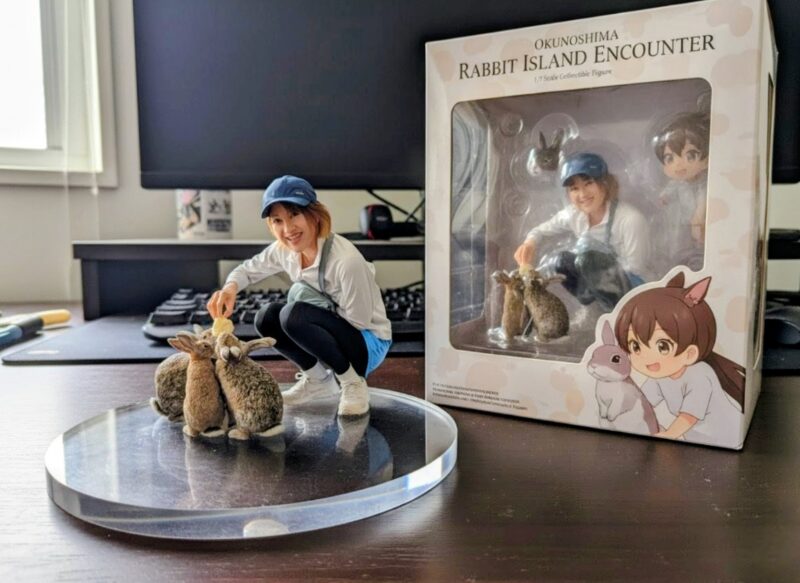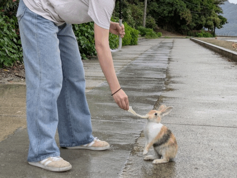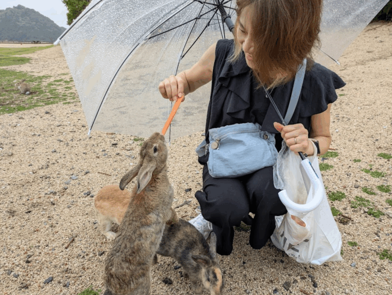彼女が座ると、袋から野菜を出す前にどこからともなくうさぎが走り寄ってきます。