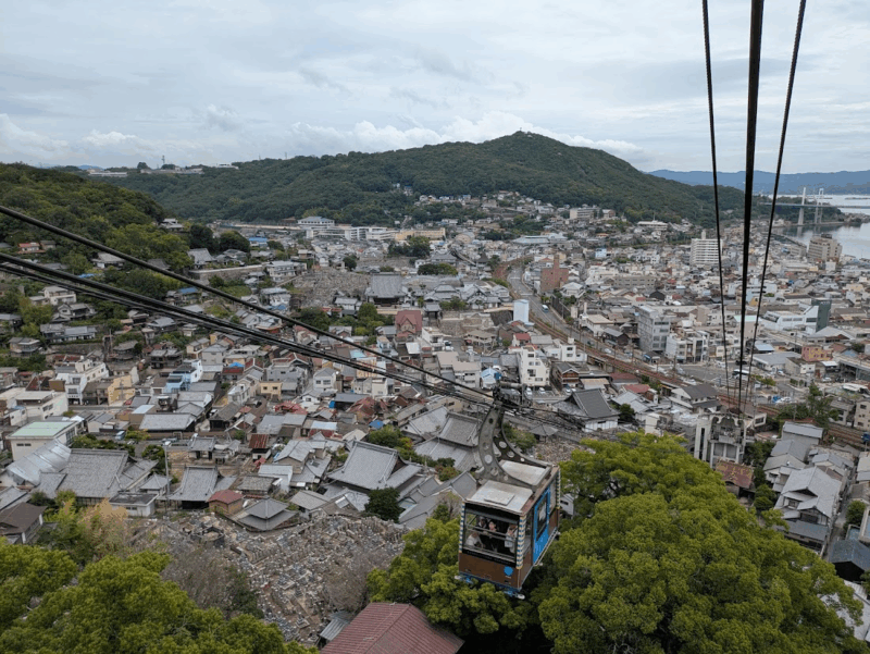 平和記念公園を後にして1時間20分ほどで尾道の高台にある千光寺公園へ到着。先日、娘と一緒に観た映画リライトの舞台です。ラッキーなことに到着時には雨があがって傘なしで散策できました。