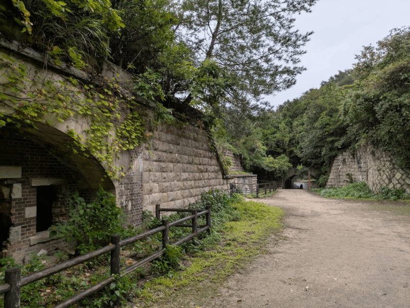 島は小さいので1時間くらいで一周できます。うさぎと戯れながら島を回る途中、こうした戦争の遺跡がひっそりと残されていました。