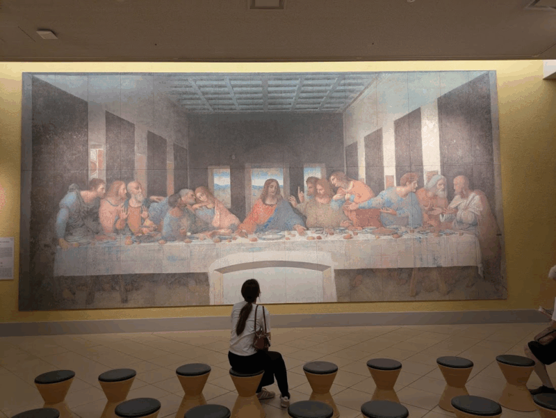最後の晩餐は、修復前と修復後の両方が同じ空間に原寸大で再現されていました。こうした展示ができるのも大塚国際美術館ならではですね。