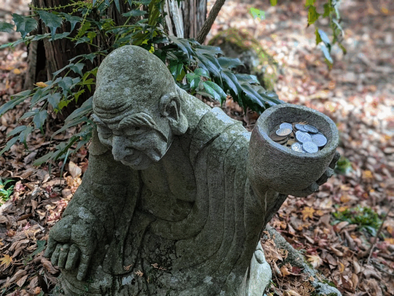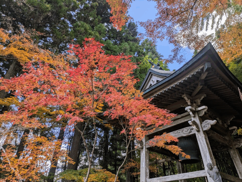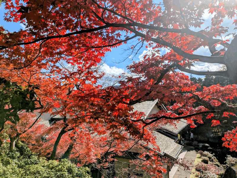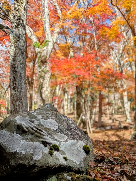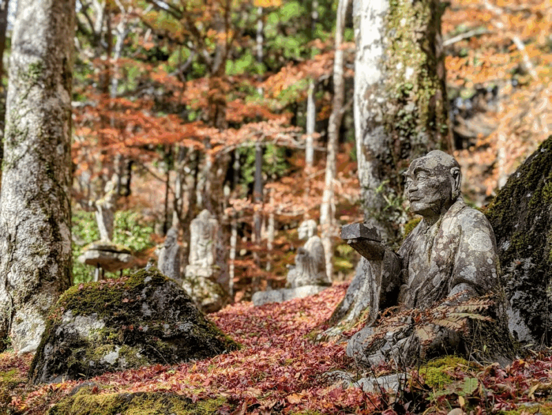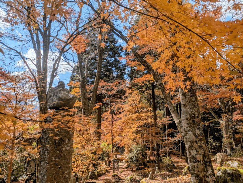 特に、境内の山の斜面に点在する、表情豊かな五百羅漢像と、それを彩る美しい紅葉の景色が有名。少し外れた場所にあるため、紅葉シーズンでも観光客はまばらで静かな雰囲気の中で紅葉が楽しめました。