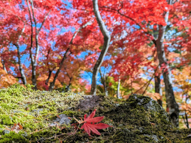 箱根強羅にある神仙郷は、斜面の地形を活かして、園池や滝、石組などが配されており、特に秋の苔庭の紅葉は息をのむ美しさで知られています。2021年に国の名勝に指定されたそう。
