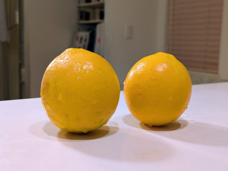 スーパーで目にするレモンと比べると、マイヤーレモンはオレンジのような丸い形です。