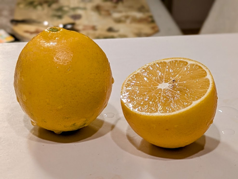 切ってみると柑橘系の爽やかな香りが広がります。味は普通のレモンほど酸っぱくなく、甘酸っぱい感じ。これから毎年、少しずつ大きく成長していく様子が楽しみです。