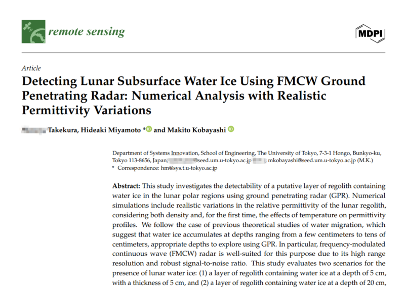 そのFMCW地中レーダーを用いた月面の地下水氷の検出可能性に関する論文がスイスの名高い専門誌に掲載されたそう。僕にはさっぱり内容は理解できませんが、お父さんは誇らしい気持ちでいっぱいです。